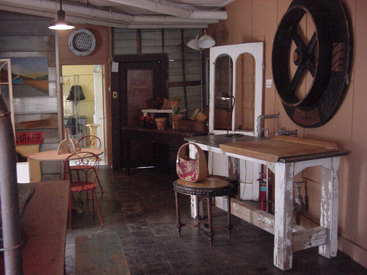 House parking lot. The unique shop features tastefully displayed antiques,